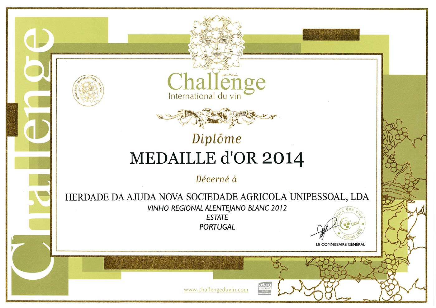 Na edição de 2014 deste concurso, foi submetido a concurso o primeiro Reserva Branco da Herdade da Ajuda, do ano de 2012.