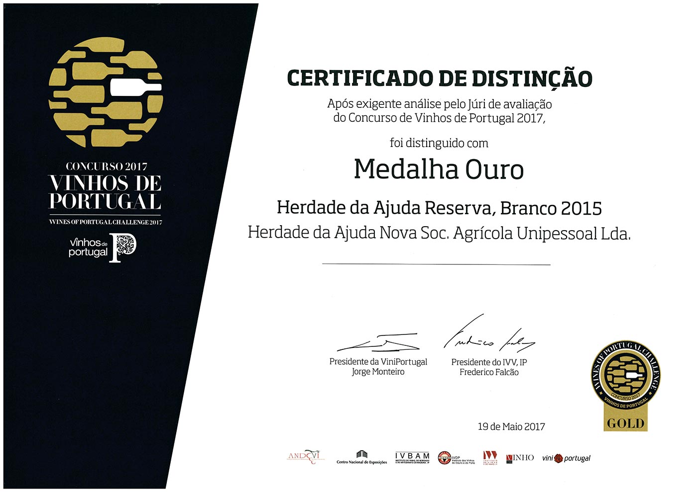 Em Maio de 2017, foi atribuída a Medalha de Ouro ao vinho Herdade da Ajuda Reserva Branco 2015.
